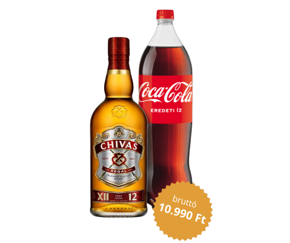 A Chivas Regal 12 éves Blended Scotch whisky segítségével beléphetsz Te is a prémium whiskyk világába!! Ez a luxus ital kifinomult, gazdag ízvilággal rendelkezik, amit gondosan válogatott skót whiskyk keverésével értek el. A Coca-Cola tökéletes kísérője ennek a prémium italnak, egyensúlyban tartva a whisky fűszeres és gyümölcsös jegyeit. Ez a csomag igazi exkluzív élményt nyújt azoknak, akik szeretik a minőségi italokat és a felejthetetlen koktélokat.