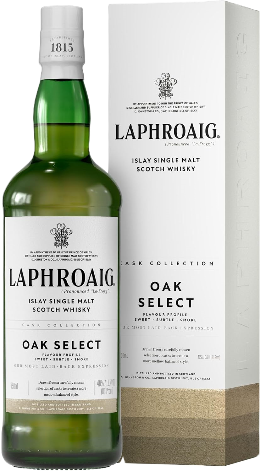A Laphroaig Select whisky neve a speciális összeállítására utal. Az ital az amerikai és az európai tölgyfahordók harmonikus egyensúlyát kínálja, amelynek köszönhetően mindkét hordótípus egyedi karakterét kiemeli az érlelés során.