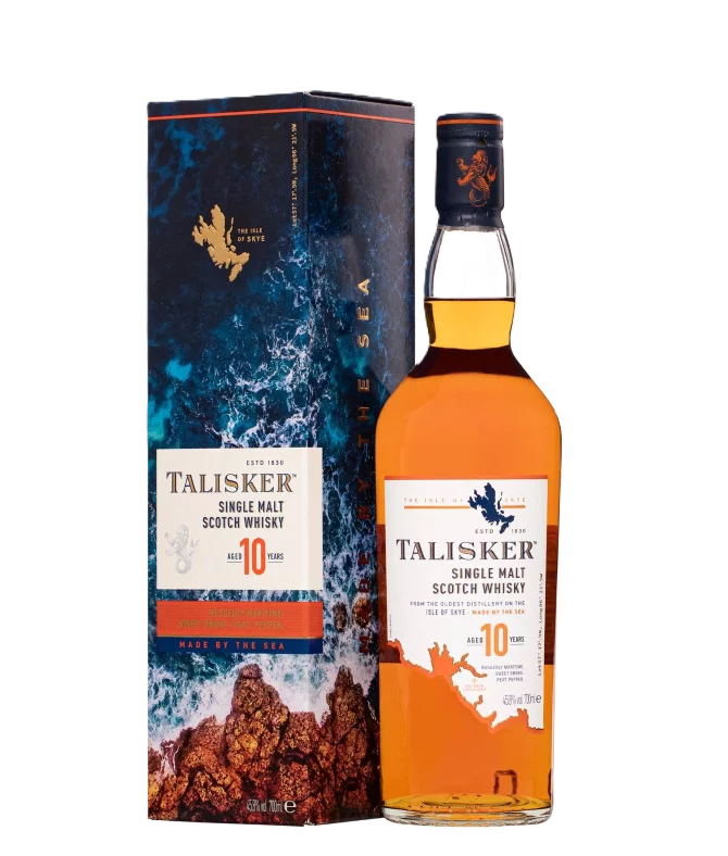 A Talisker egy klasszikus skót single malt whisky a Skye szigetéről, melynek tengeri közelége sós, enyhén szúrós, tengeri moszatra emlékeztető ízt kölcsönöz ennek a rendkívüli tisztaságú whisky-nek. Ez az ital többek között a Johnnie Walker egyik alkotóeleme is, és igazi robbanós ízélményt nyújt. A Talisker az egyetlen malátawhisky, amelyet a távoli, vadregényes Skye-szigeten készítenek, már 1830 óta. Az érleléshez amerikai tölgyfahordókat használnak fel, és a palack a Diageo Classic Malts sorozatának tagja.