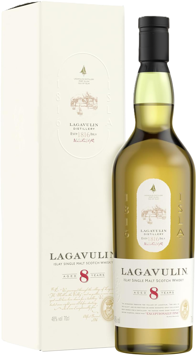 Az 1880-as években Alfred Barnard, a híres "The Whisky Distilleries of the United Kingdom" szerzője meglátogatta a lepárlót, és leírásában kiemelt egy 8 éves, kitűnően sikerült verziót. Ez elegendő apropót szolgáltatott a főzdének, hogy egy 8 éves érleléssel tisztelegjen az évforduló előtt. A termék azonban olyan sikeres lett, hogy beemelték az alapsorba, így ma már a megszokott, klasszikus 16 éves mellett egy feleannyi idős Lagavulin is a fogyasztók és gyűjtők rendelkezésére áll.