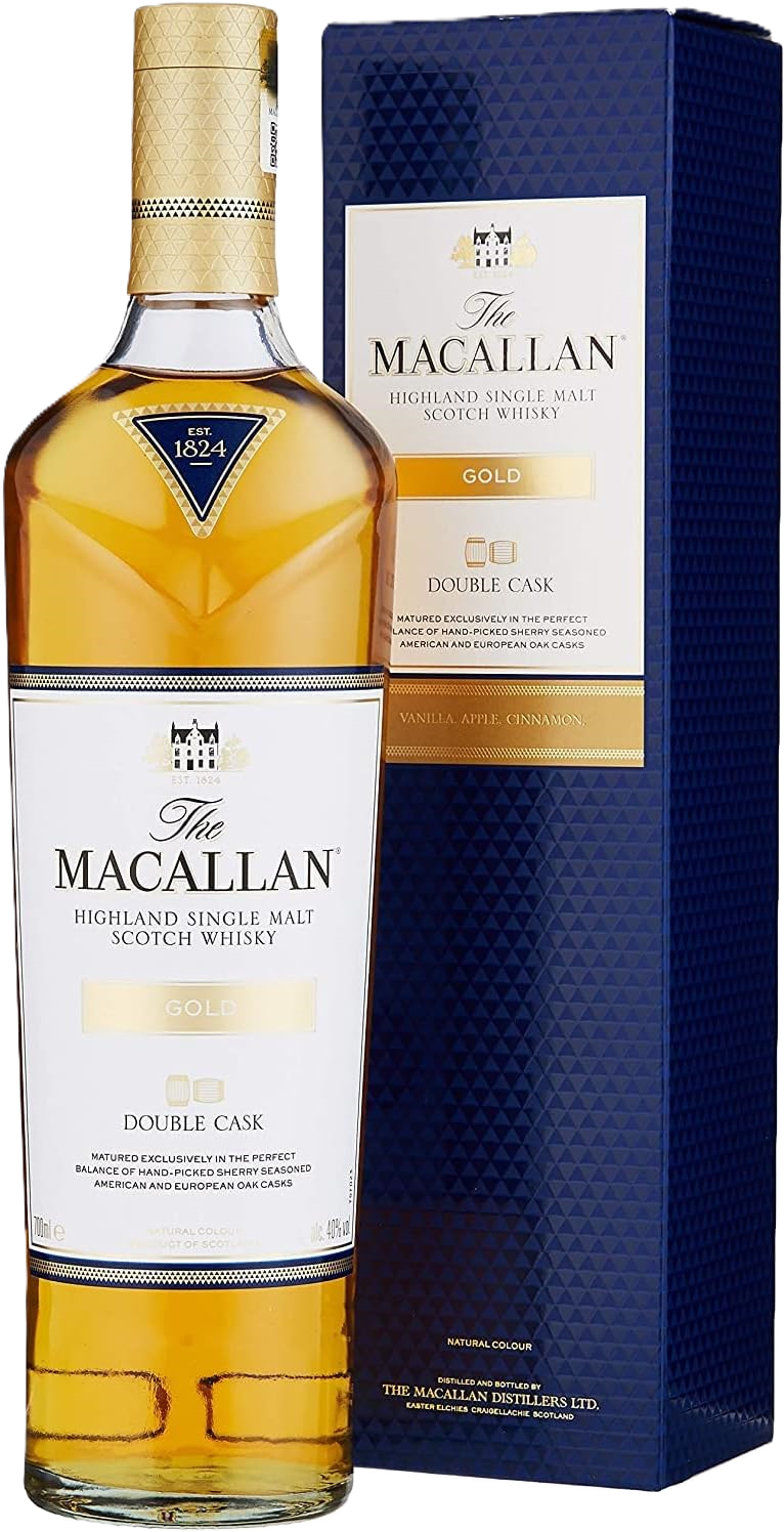 A Macallan Gold Double Cask Whisky egy különleges skót single malt, melyet a Macallan lepárló mesteri kézügyességgel készít. Az ital a Macallan elkötelezettségét tükrözi a minőség, az érlelés és az íz harmóniájában, kifejezetten azoknak, akik értékelik a kiváló whisky-élményt.